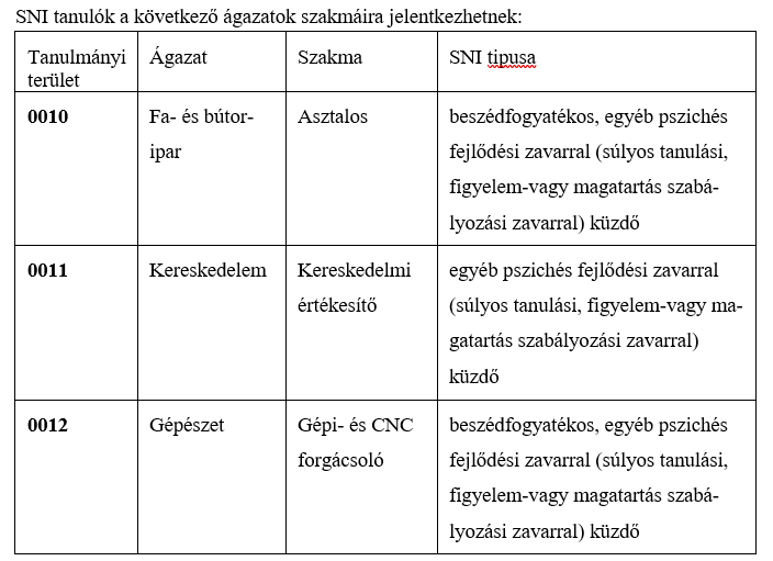 A tanulmányi területekre sajátos nevelési igényű és beilleszkedési, tanulási, magatartási nehézséggel küzdő tanulók is jelentkezhetnek.