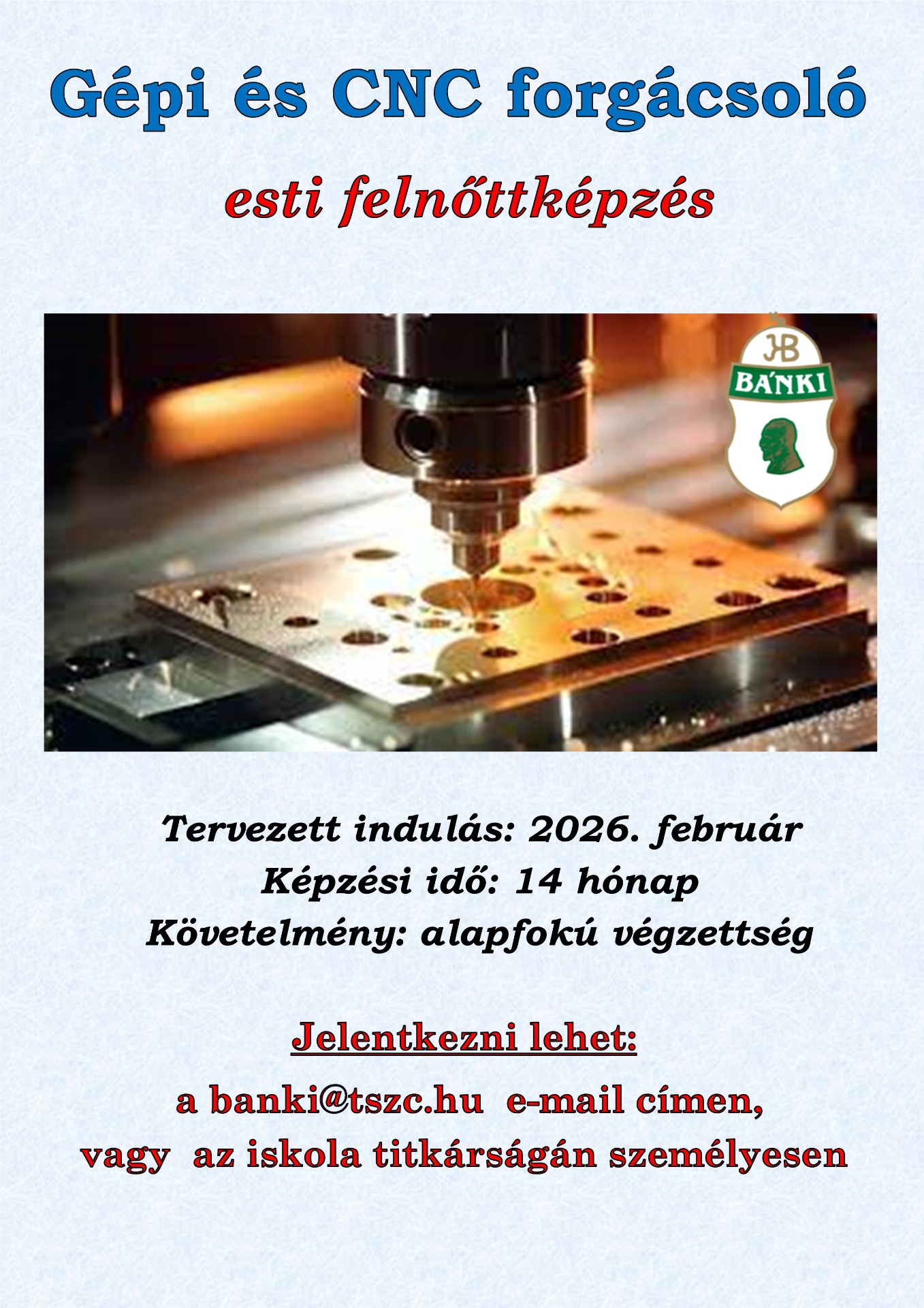 Aktuális felnőttképzéseinkről érdeklődjön a banki@tszc.hu e-mail címen, vagy személyesen az iskola titkárságán (2870 Kisbér, Batthyány tér 2., 1. Emelet)